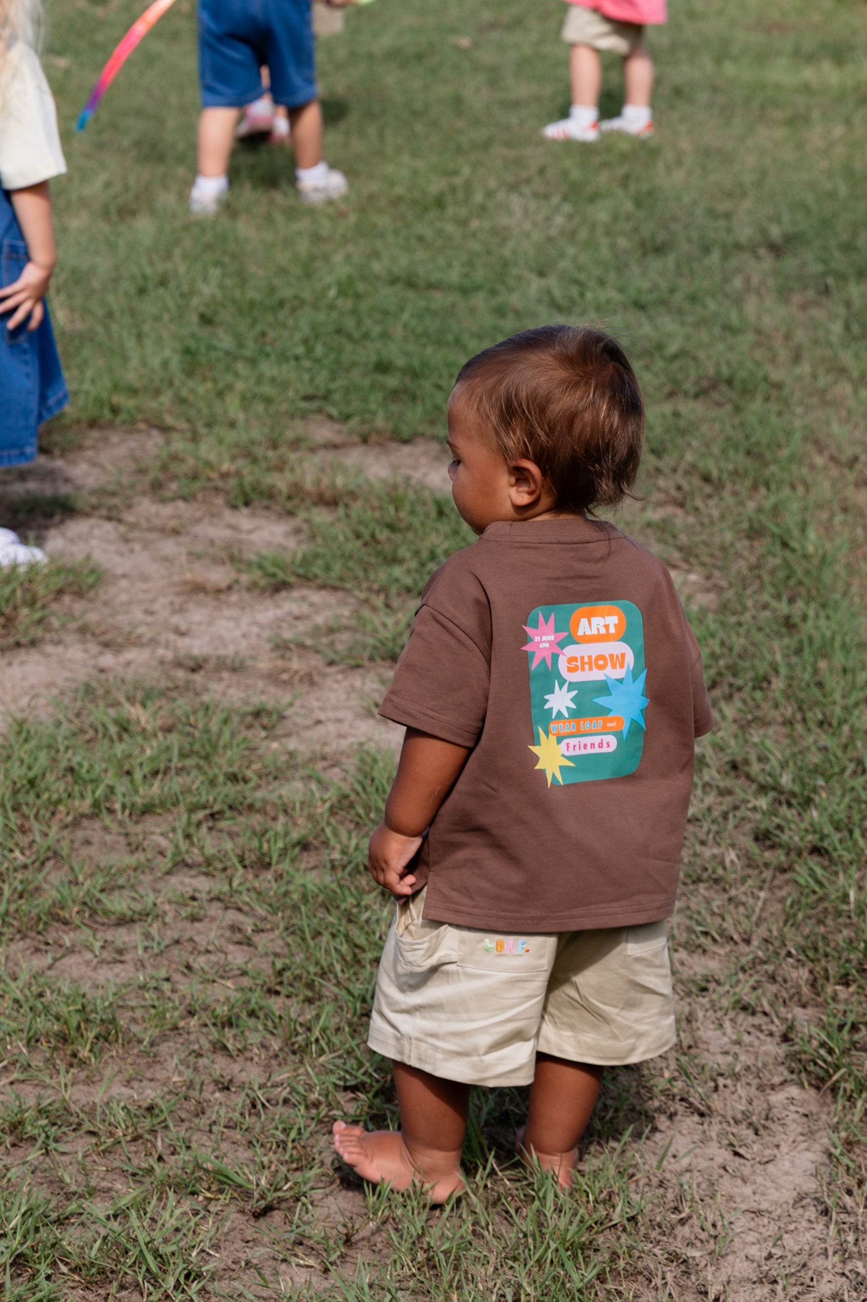 This special tee is inspired by a real moment close to our hearts: the very first art show put on by the children of LOAF’s founders. What began as a living room gallery filled with handmade masterpieces is now forever captured in this playful design—complete with hand-drawn lettering, bold starbursts, and that same spark of childhood wonder.
